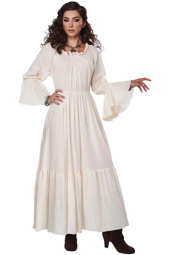 The Renaissance peasant chemise is a cream colored dress with elastic collar and sleeve ends. It can be utilized to help build your historically inspired outfit. Nice quality.