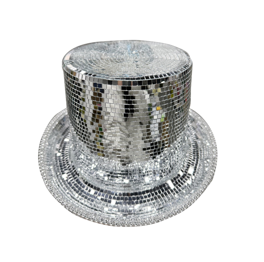 Experience the ultimate in glamour with our Silver Disco Tile Top Hat! Made with super deluxe quality, this top hat features mirrored tiles that will make you shine like a disco ball. Perfect for parties, performances, and more!
