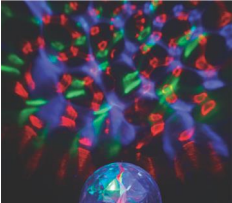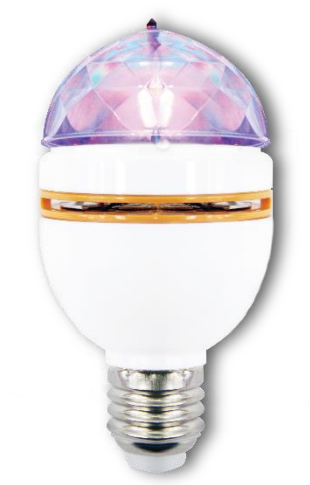 Lil Nebula multicolored (red, green and blue) rotating prism dome screws in any standard light bulb socket. The LED's last up to 20,000 hours and creates a fun, party atmosphere. cETL listed. Bring the Club atmosphere right to your home!
