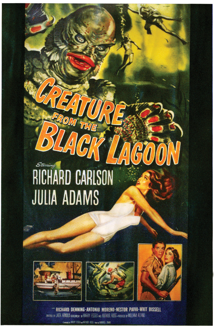 Vintage horror movie poster cling from the film Creature From the Black Lagoon. Re-Usable Self-Adhesive Poster. Measures 24" x 36".