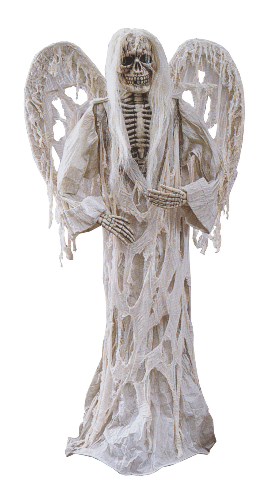 You can creep your guests out with this spooky decoration. This Winged Gruesome Skeleton Greeter is a 6 ft. tall boney skeleton that is wearing a tarnished and destroyed ivory robe. Even the large angel wings are made to look like bone and covered in cloth as well. People will be very skeptical of entering your home since this is just standing on your front porch.