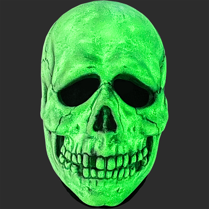 Developed by Justin Mabry Trick or Treat Studios and Universal Studios are proud to present the Official Halloween III: Season of the Witch Glow in the Dark Skull mask! This mask is an identical replica of the mask created by Conal Cochran to kill innocent children on Halloween night but now in glow in the dark! The Official Halloween III: Season of the Witch Skull mask was sculpted by our Art Director, Justin Mabry, and is based on numerous screen shots to make it the most screen accurate mask ever released. Mask includes the Silver Shamrock Power Chip! Halloween III is a trademark and copyright of Universal Studios. Licensed by Universal Studios Licensing LLC. All rights reserved.