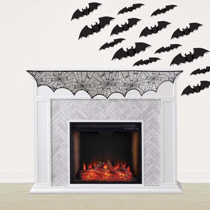 Add a spooky touch to your home décor with this majestic black spider web mantel scarf! Crafted of polyester for lasting durability, its 18½" x 8' size gives plenty of coverage for a grand display. Perfect for bringing a haunting seasonal energy to your living space.