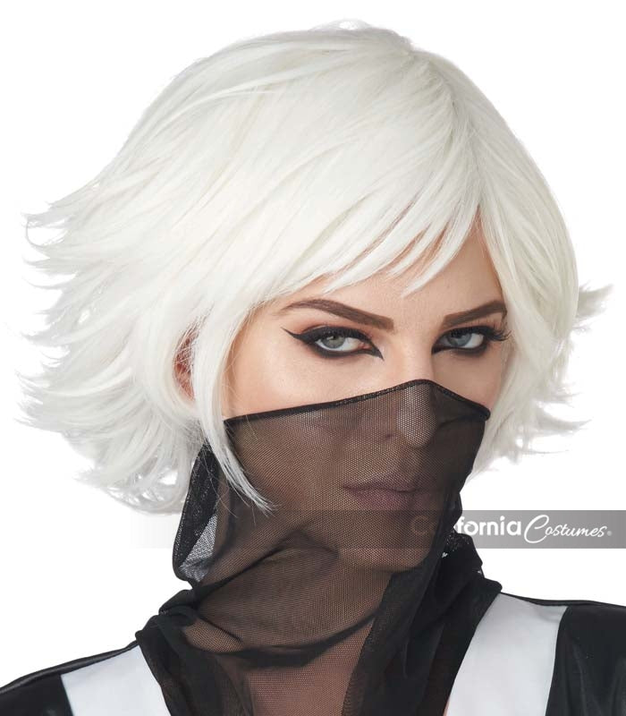 Product Description: A feathered short bob hairstyle in matte white. The Feathered Cosplay wig can be fashioned into a variety of characters.
