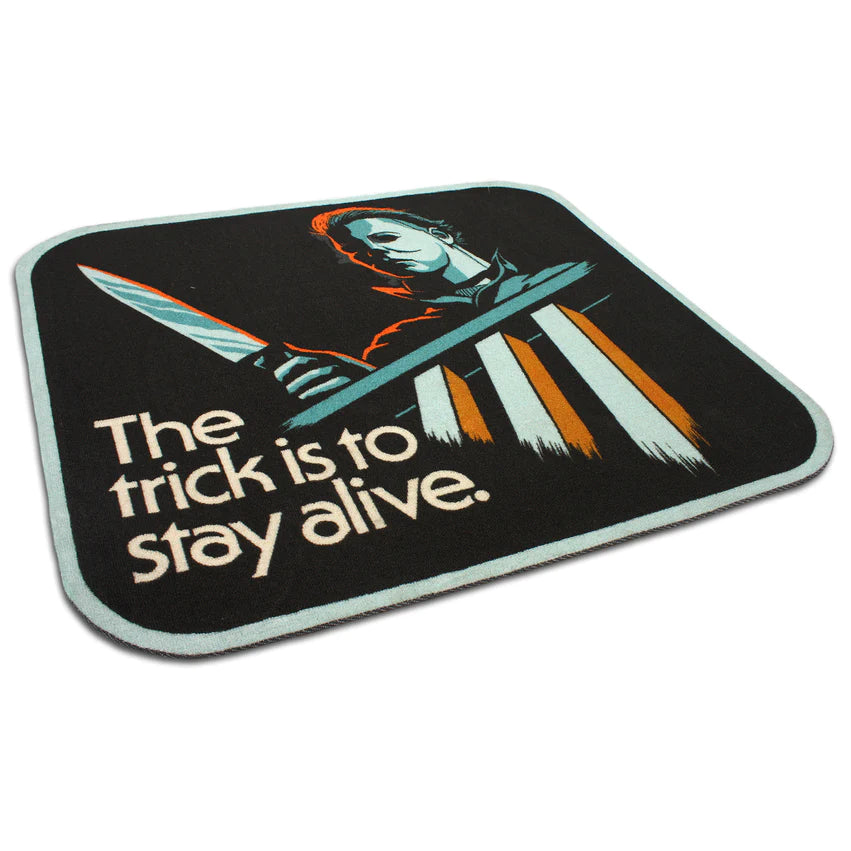 John Carpenter's masterpiece takes shape with a new eerie area rug addition! Look down on Michael Myers as he looks down on his next victims in this bold and eye-catching rug highlighting the iconic imagery from the 1978 horror classic. Add this to your bedroom, basement, kitchen, or front hallway and know Myers' is always looking out for you.