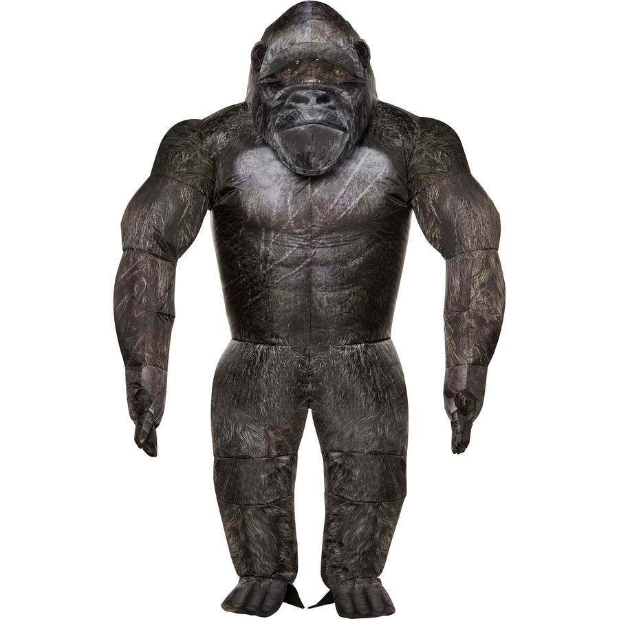 Inflatable jumpsuit and battery-operated air inflating fan. This child costume is a one size fits up to a size 8.