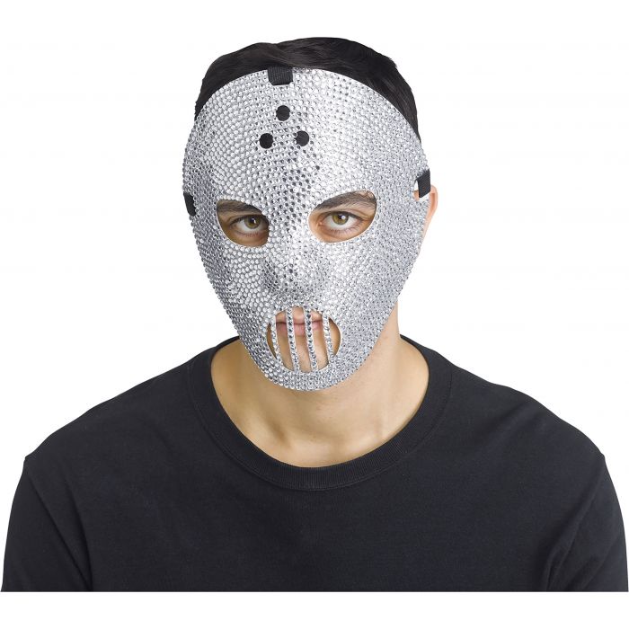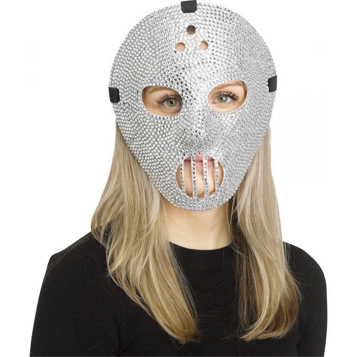 Introducing the Bling Rhinestone Hockey Mask, perfect for a sexy horror character. This unique mask is adorned with sparkling rhinestones, making it a standout piece for any costume or cosplay. Channel your inner seductive villain and turn heads at your next event.