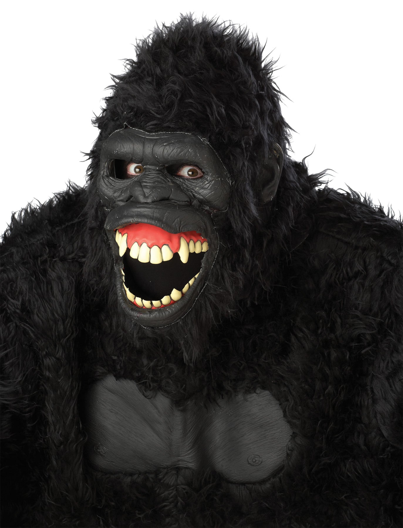 Wild and free! The Goin' Ape Ani-motion mask features a moving mouth action. The mask is composed of a foam skin that lays over a hard plastic backing. The mask motion is powered by the wearer's own jaw and chin motion.