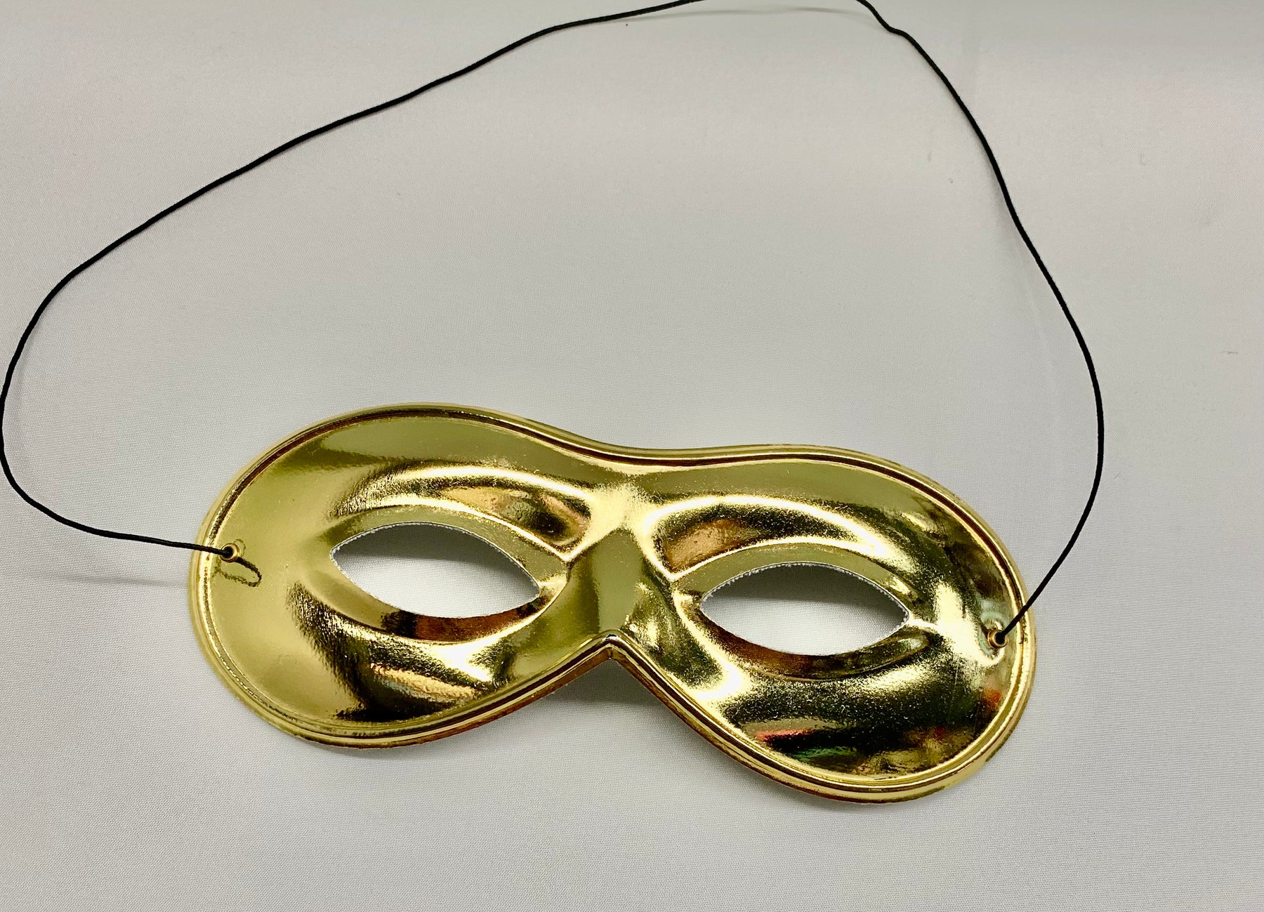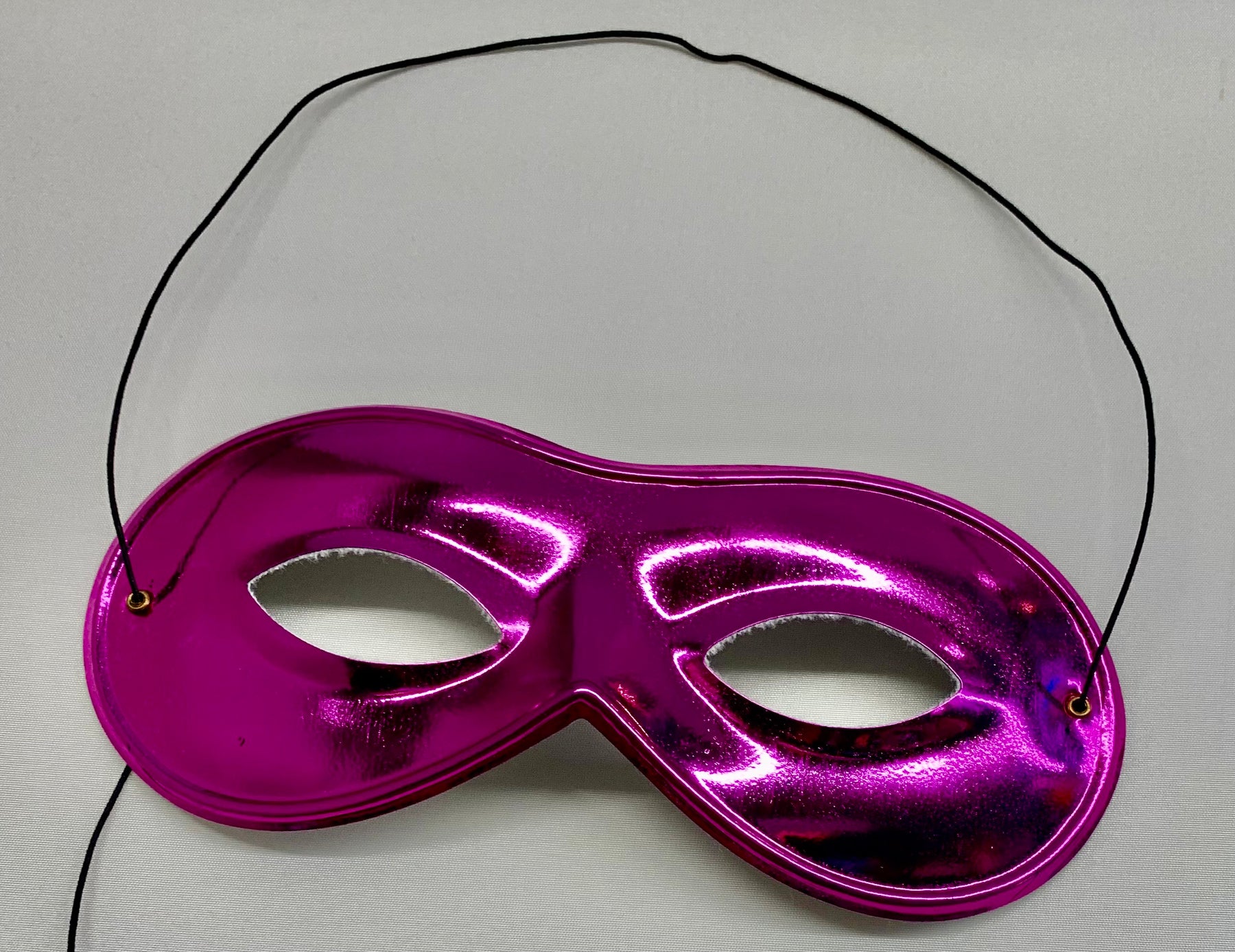 Indulge in luxury with our solid color metallic Columbina Eye Mask. Handcrafted in Italy. Attached elastic fastener for a secure & comfortable fit. Solid Color shiny plastic on front. White fabric on back.