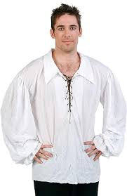 Introducing our Renaissance Colonial Shirt, perfect for your next Renaissance Faire or as a versatile pirate shirt. This lace-up white shirt features a stylish collar and fits up to a 40" chest with 22" sleeves and 26" length. Guaranteed to elevate your historical wardrobe, order yours today!