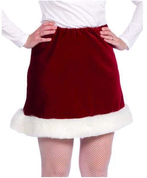 Burgundy Velveteen skirt with elastic waist and accented with white long-hair trim.