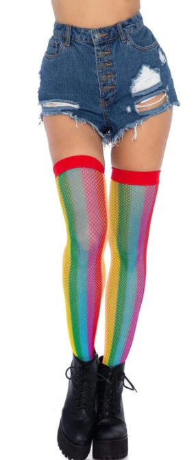Rainbow Fishnet Thigh Highs