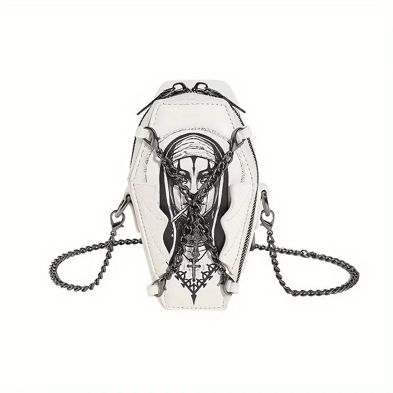 Embrace the spooky season with our Nun Mini Cross Body Bag! Perfect for small essentials, this trendy bag features a Halloween-themed design with a Nun and pumpkin. Its zipper closure ensures your items stay secure while you rock a fashionable look. Get yours now and stand out in style!