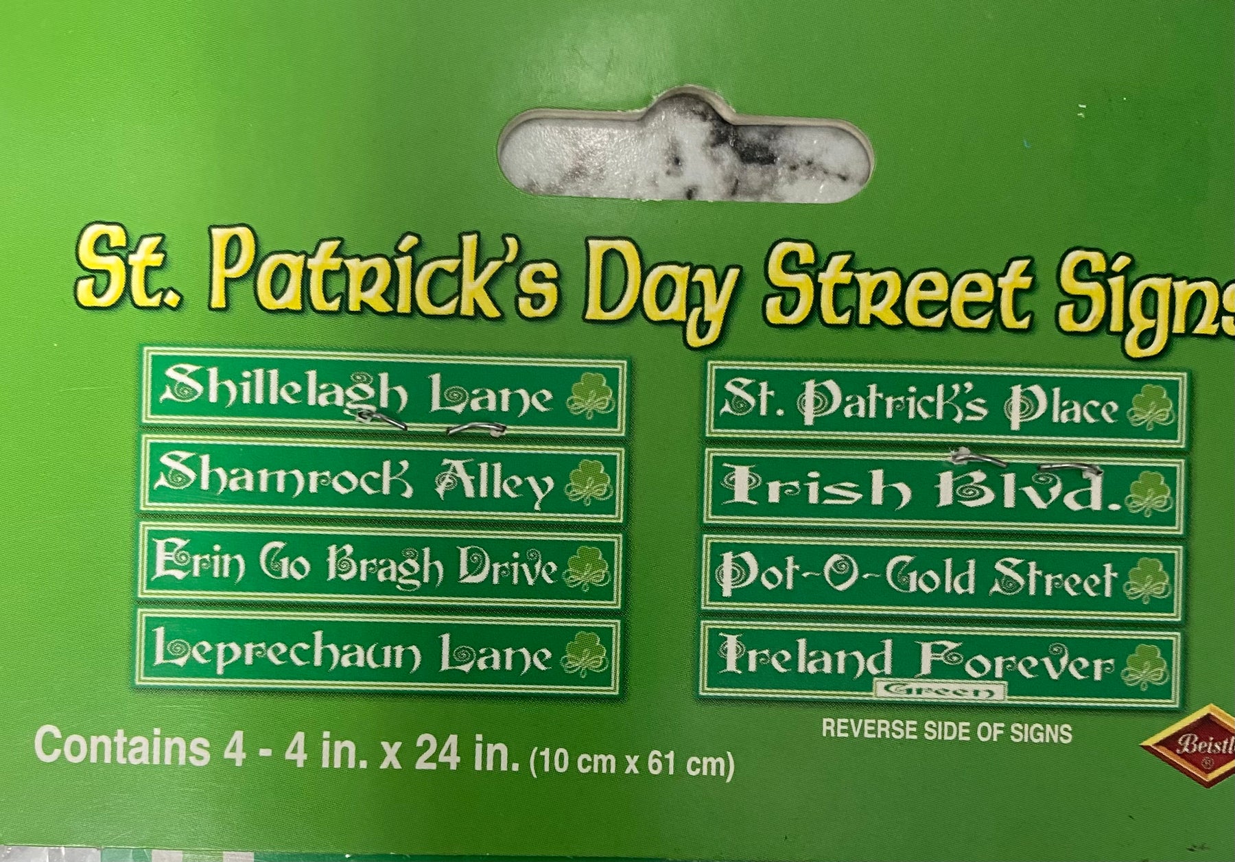 Get ready to celebrate St. Patrick's Day like never before with these vibrant and festive street signs! Each package includes 4 signs, perfect for decorating your home or business and spreading the holiday spirit. Show your Irish pride and bring the luck of the Irish to your neighborhood with these eye-catching signs.
