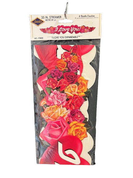 Capture the enchanting nostalgia with the Vintage I Love You! Streamer! Measuring 35 inches, this streamer from 1992 adds a touch of charm and sentimentality to any celebration. Perfect for expressing your love and creating unforgettable memories with loved ones. Relive the magic with this one-of-a-kind streamer today!