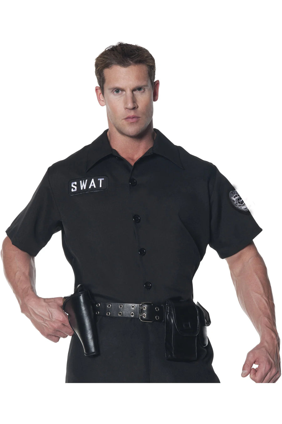 Take your tactical style to the next level with this Adult SWAT Shirt! In classic black with embroidered patches, it will give you the confidence to take on any challenge. Make an impact with this bold statement piece!