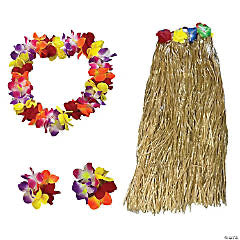 Show off your graceful Hula dance moves wearing our colorful Hawaiian Accessory Kit! Each kit includes a grass-like Hula Skirt with fabric flower waist accents, a colorful fabric flower Lei and matching flower Wrist Cuffs. Just add your own bikini top or flowered shirt for a complete look. Add a pair of shorts underneath for modesty. One size fits most adults.
