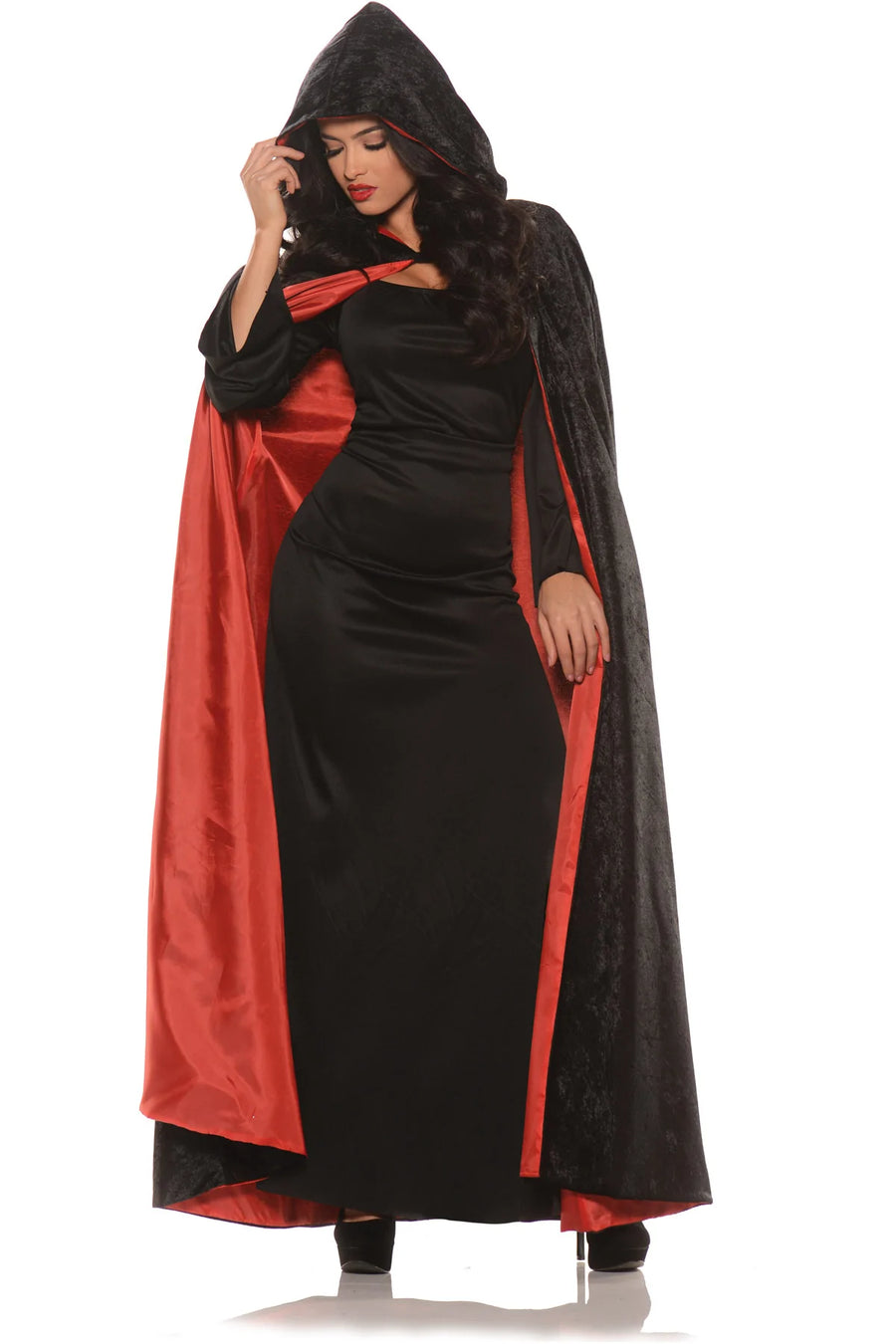 Full-Length Hooded Velvet Cloak with red Lining. One Size. Deluxe quality.