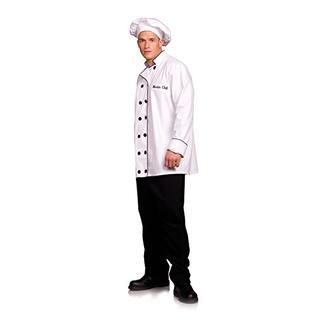 Costume includes White double-breasted coat made from 100% polyester and matching Chef Hat. Coat buttons up the front for closure and has black trim. Men's One Size Fits Most (40-44), and XX-Large (Up to 50) High quality costumes presented by Underwraps Costumes
