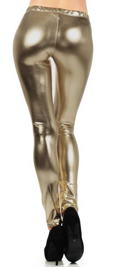 Sleek, sexy metallic leggings. Features a comfortable elastic waistband.