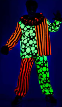 Unleash your daring side with the Neon Terror Clown Costume for adults! Stand out in the night with its eye-catching neon design. Perfect for Halloween parties, this costume is guaranteed to bring a thrilling twist to your festivities. Take a risk and make a bold statement with this terrifyingly fun outfit! Glows in Blacklight!