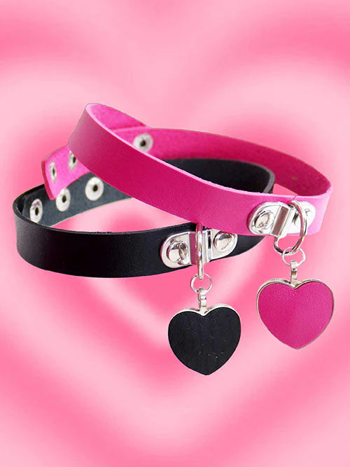 Faux Leather Choker With Metal Heart.