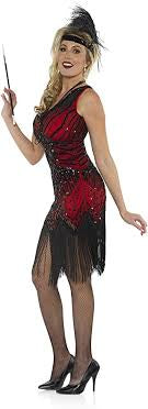 This beautiful red & black sequined Gatsby costume for women is what you will need to razz up the crowd at your upcoming roaring twenties event! This form fitting style will show off your figure in a very flattering way.