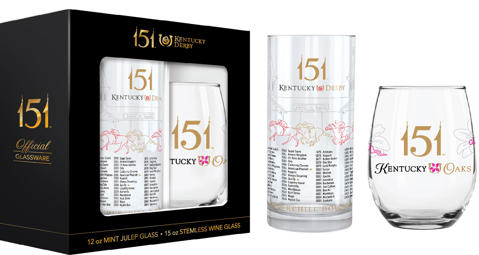 Kentucky Oaks and Derby 151 - Official Lily and Mint Julep Glass Set