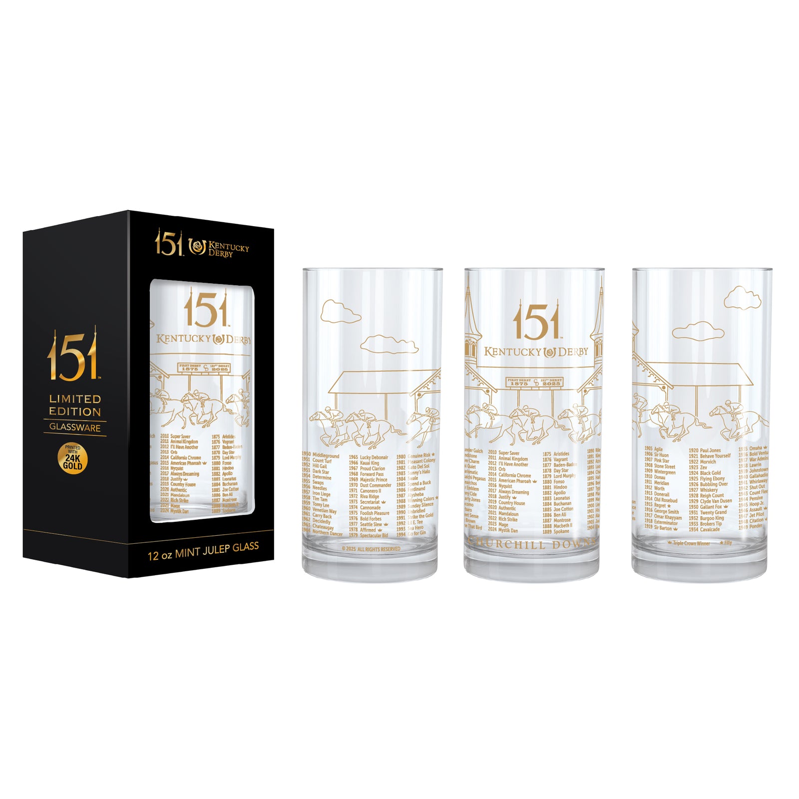 Kentucky Derby 151 - Official 24 Carat Gold Printed Mint Julep Glass