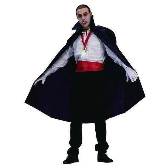 This 45" long black nylon cape is perfect for your costume needs! It is adult size, but can work as a longer cape for tall children. The lightweight fabric ensures comfort for all day wear.