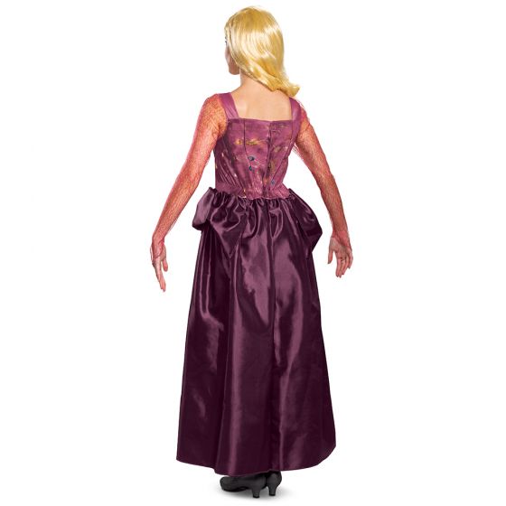 This costume is so beautiful it will make you want to run Amok! Amok! Amok! Amok! When you wear this deluxe costume, you will look just like Sarah Sanderson from Hocus Pocus. This full length costume is sure to impress wherever you go this Halloween. It's even great for comic and horror conventions. Just grab a blonde wig and Sarah's purple cape and your costume will be complete!