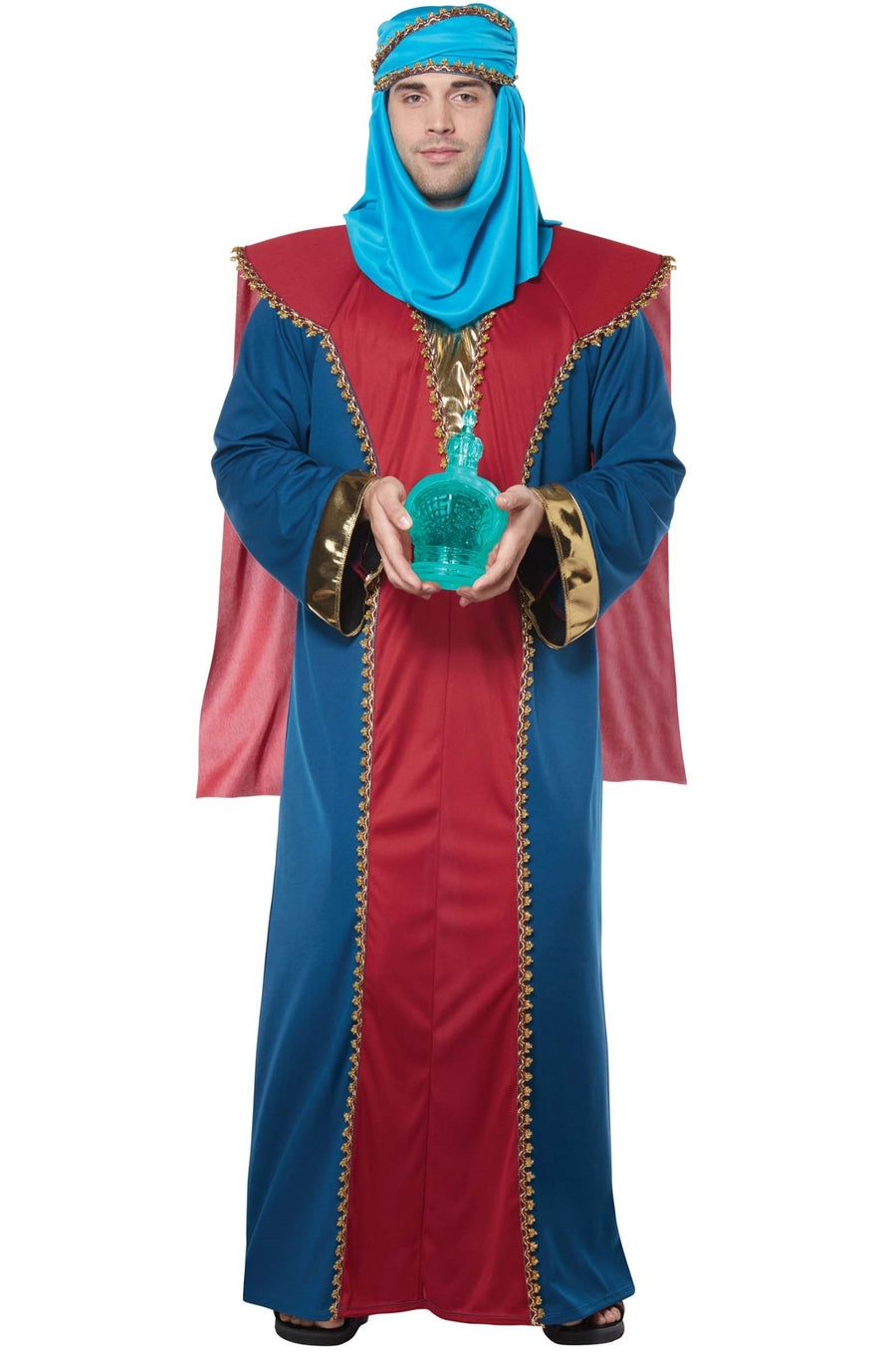The wise man from Arabia, The Balthasar costume is a decorated robe with attached cape and an included turban.