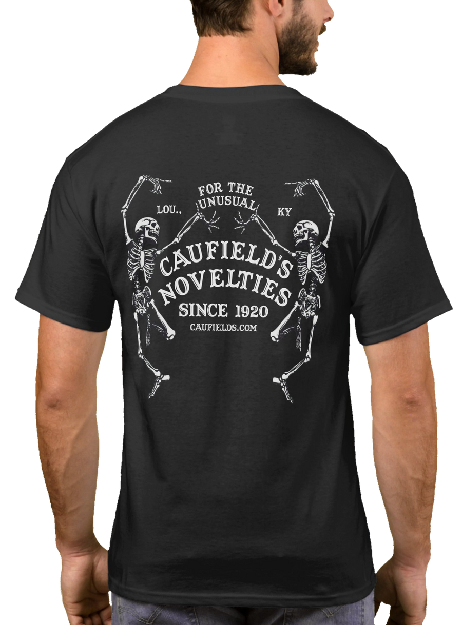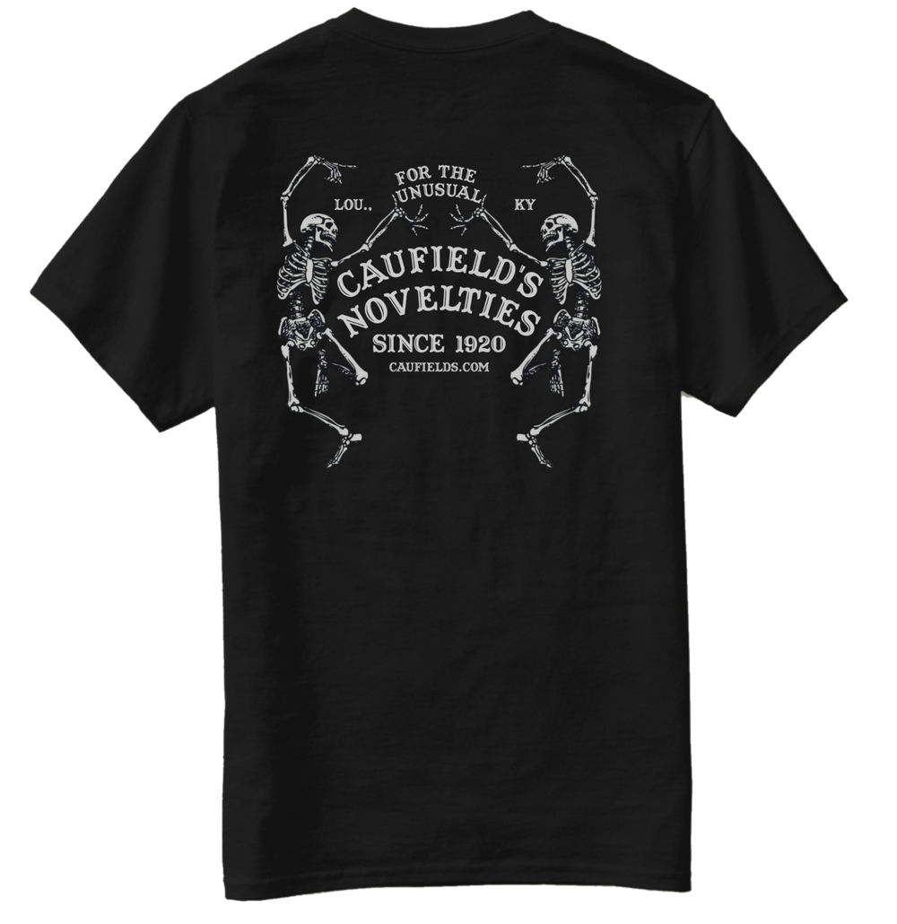 This Gildan DRYBLEND t-shirt features our NEW retro dancing skeleton design on the back and our logo emblem on the front left breast.