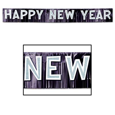 This 10” x 9’ Happy New Year Banner adds a festive touch to any party! Glitter cardboard letters are pre-attached to a metallic fringe banner. 1 per pkg.