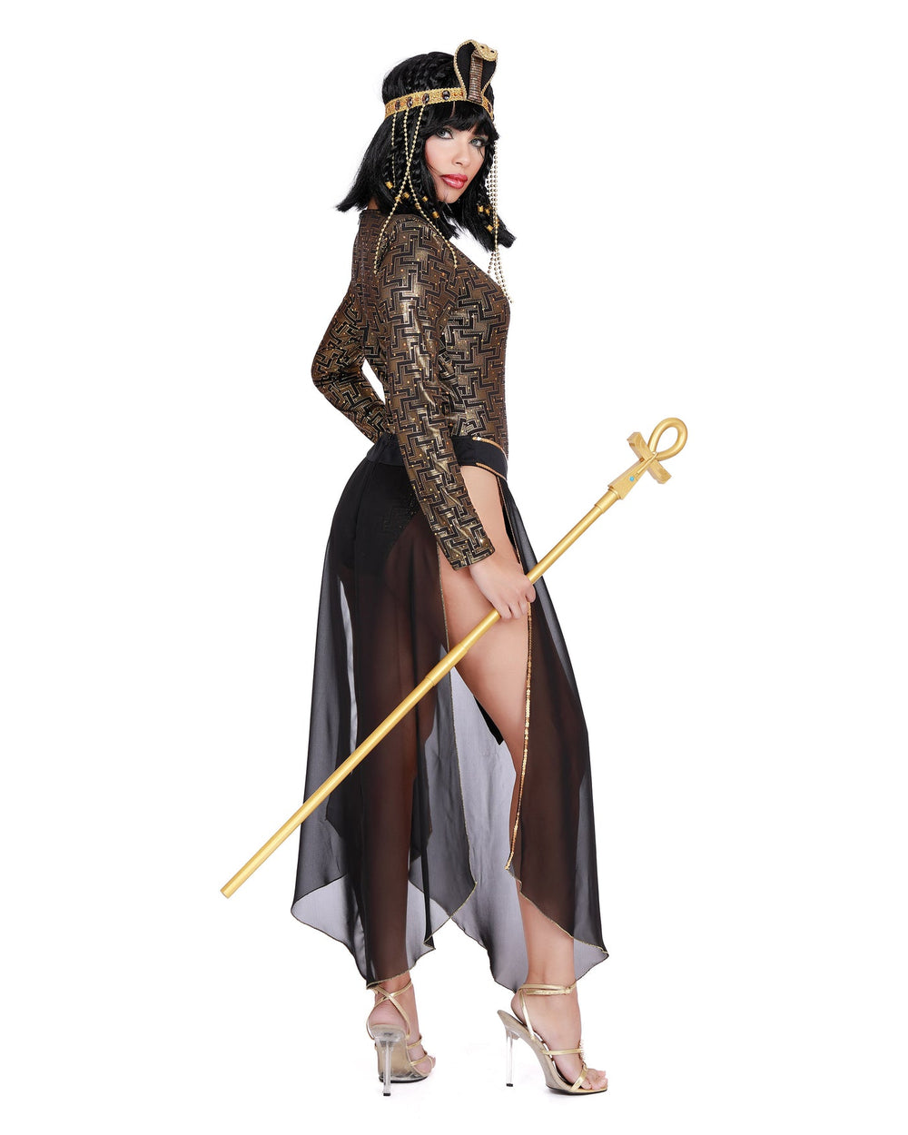This exquisite costume includes an Egyptian print bodysuit with snap-crotch and a chiffon skirt with the Egyptian symbol "Ankh".