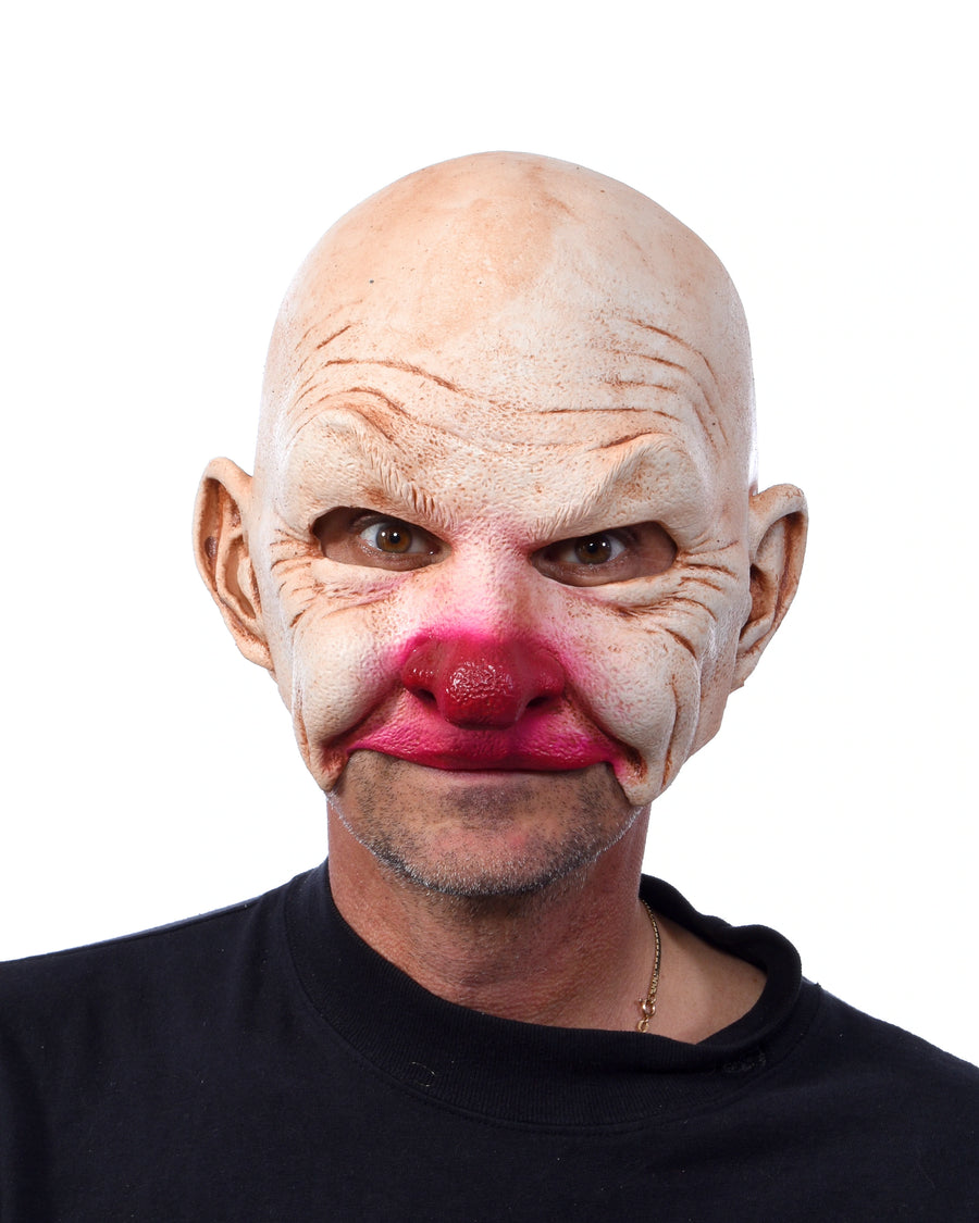 UV Reactive Creepy Carnival Clown Sculpt with an open mouth perfect for parties and theater actors. Very comfortable to wear with excellent visibility. Halloween Trick or Treaters won't think it's all fun and games after seeing you in this Adult Carnival Creepy Clown Mask! This latex mask features a white clown face with painted red large nose with red tip an open mouth making it easier to breathe and stay in character. The perfect fit keeps this clown mask secure while you are trick-or-treating or dancing the night away.