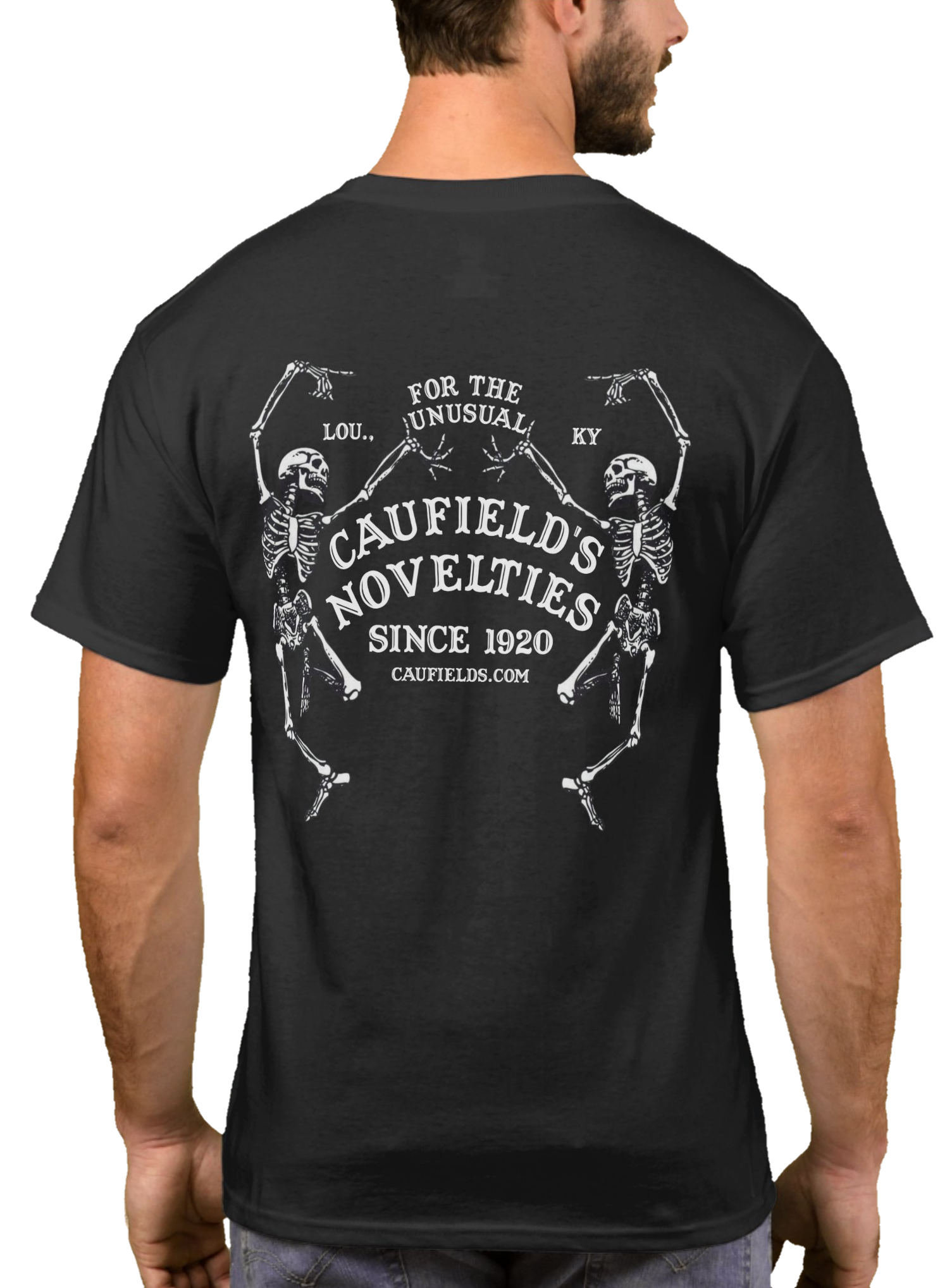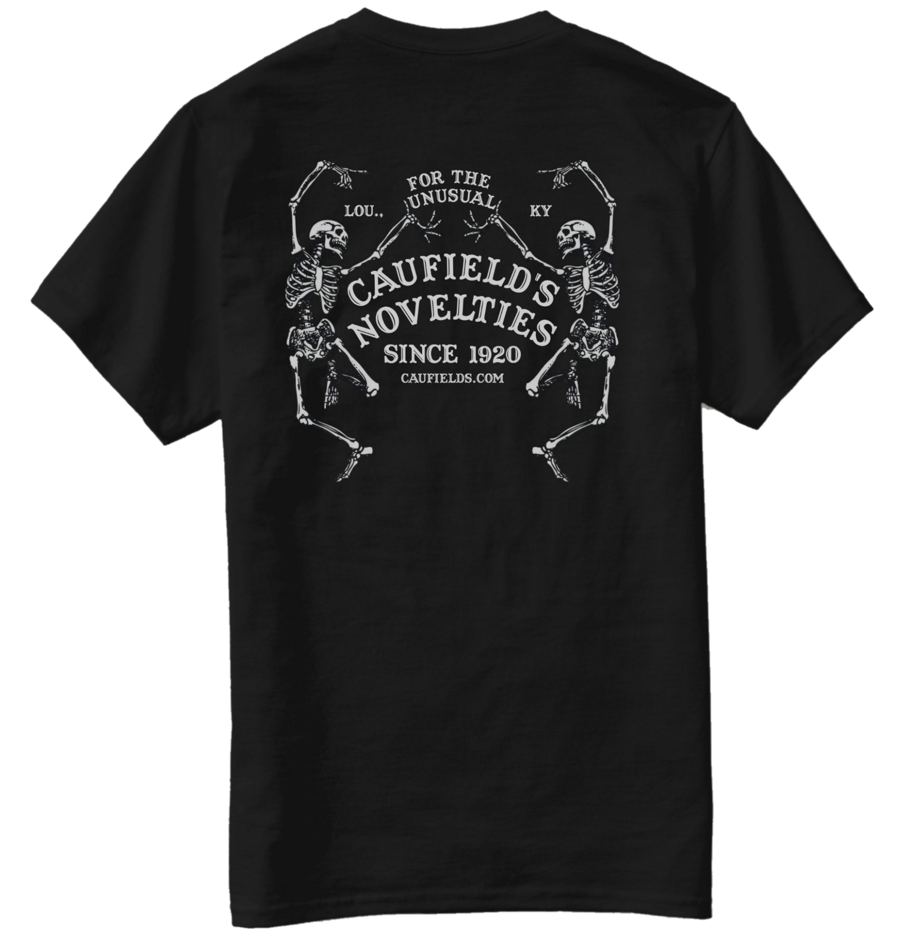 This Gildan DRYBLEND t-shirt features our NEW retro dancing skeleton design on the back and our logo emblem on the front left breast.