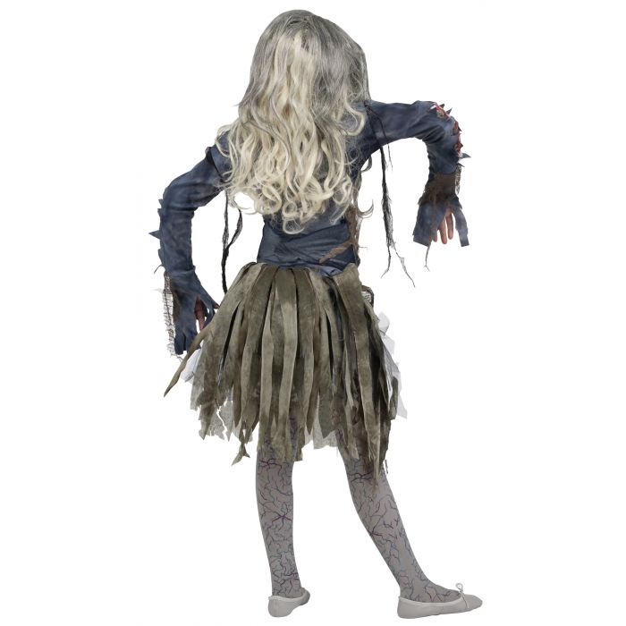 Your sweet little girl will transform with this Zombie Girl Costume for a ghoulishly good time! The costume includes a dress and a 3-D guts waist cinch for a creepy yet playful look. Perfect for Halloween or a themed party, this costume is sure to bring a spooktacular touch to any occasion.  Tights are NOT included. Available in 2 sizes.