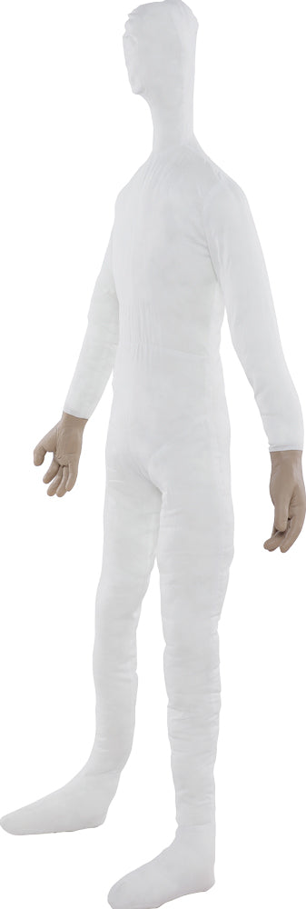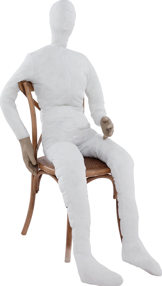 Dress it up and make it look absolutely real. Cloth body with real looking hands and poseable arms and neck. Poseable. Has wires in arms.