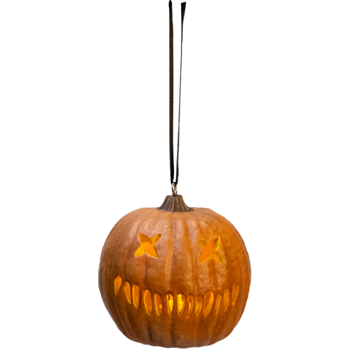 Every detail of Sam's iconic pumpkin from Trick r Treat is represented in this highly detailed light up ornament.