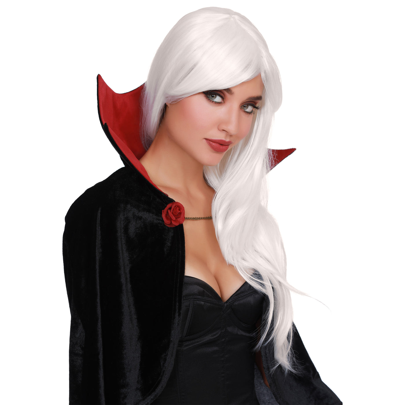 Long layered wig that has an adjustable elastic closure which gives the look and feel of natural hair, allowing you to completely transform on Halloween… or any other night of the year!