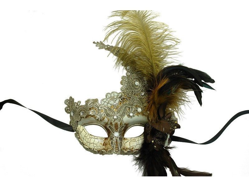 Antique Silver Mask with Feathers, Lace, & Crystals