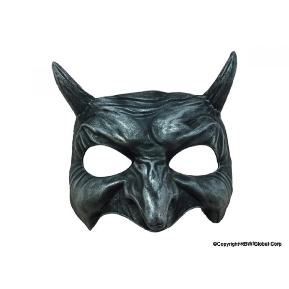 Silver Demon Half Mask with Black Highlights & Horns