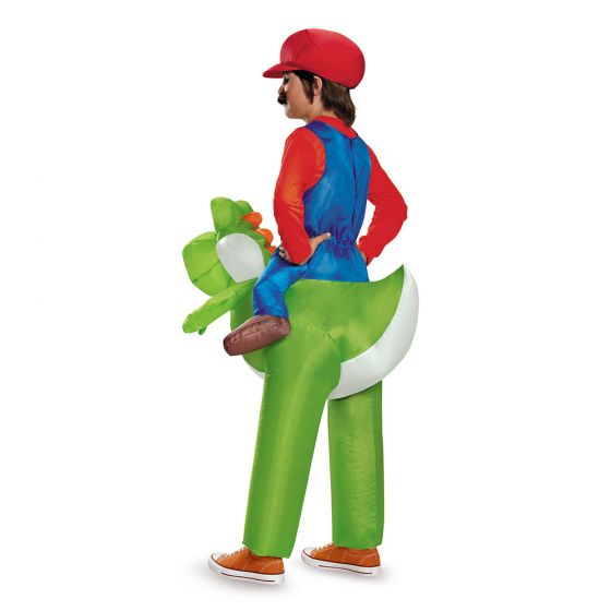 Level up your child's Halloween costume game with the Mario Inflatable Riding Yoshi Child Costume. This fun and unique costume features an inflatable character riding Yoshi, bringing the iconic characters from the Super Mario games to life. Made with high-quality materials, it's comfortable and durable for hours of trick-or-treating fun. Get ready for an adventure with Mario and Yoshi!