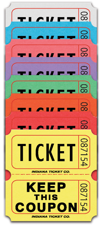 Original 2″ by 2″ double roll with “Ticket” and “Keep This Coupon” images.