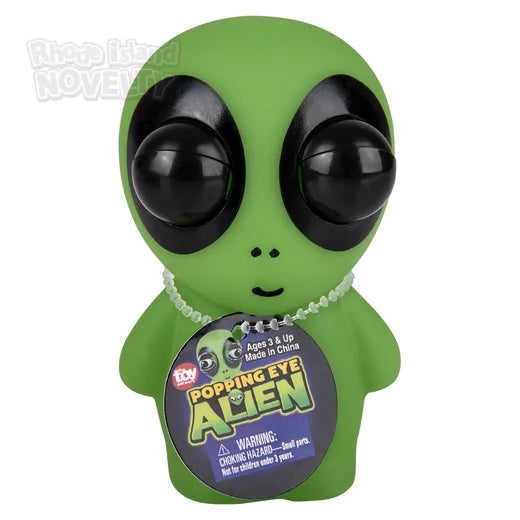 Get ready for giggles with these 3.33" popping eye aliens! Squeeze them and watch their eyes comically pop out—perfect for silly fun and surprises. Each alien comes with its own UPC sticker and is safe for ages 3 and up. Add some playful excitement to your collection today!