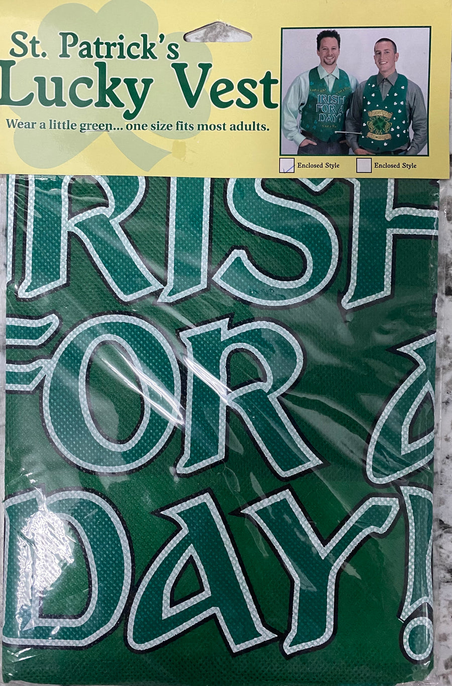 "This St. Patrick's Lucky Vest is made from high-quality muslin material, ensuring comfort and durability. Wear it to celebrate the luck of the Irish or simply add a touch of green to your wardrobe. Perfect for any occasion, this vest will bring a touch of luck and charm to your outfit."