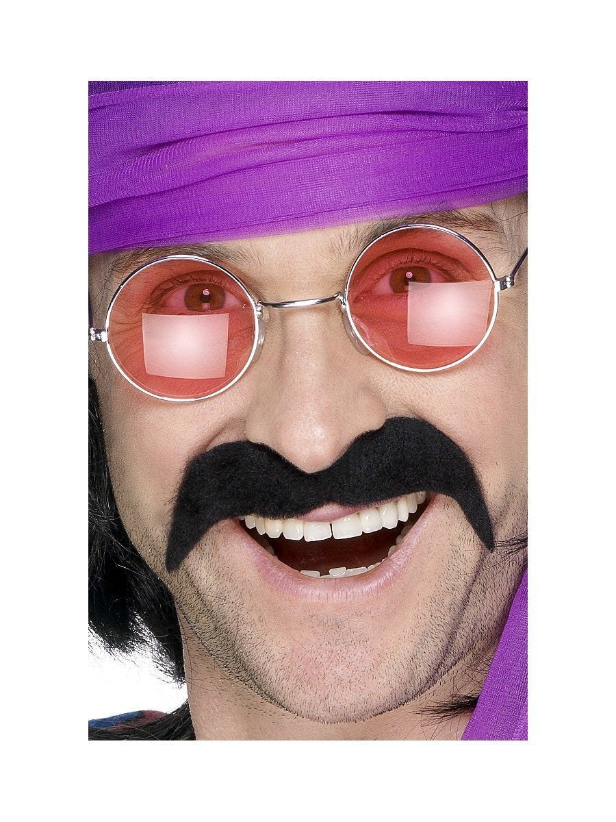 1970's style mustache with adhesive backing. (Glasses and headscarf not included)