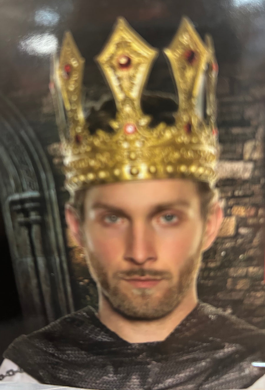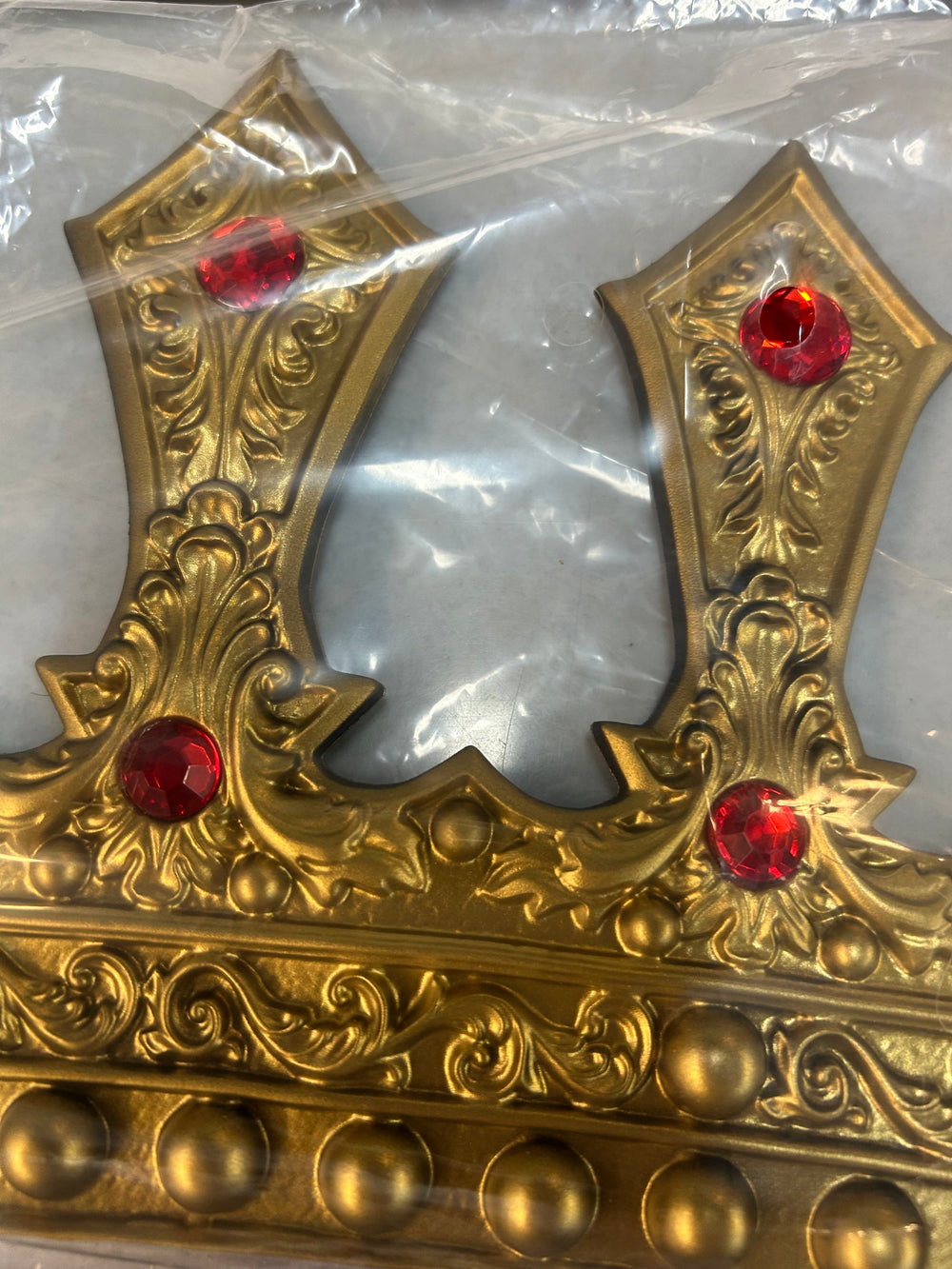 Rule over your kingdom in style with this King's Gold Foam Crown adorned with sparkling red jewels. The lightweight foam material ensures a comfortable fit for all aspiring royalty. Be the envy of all your subjects with this regal and playful accessory.(No need to dig for treasure, we've got you covered!)