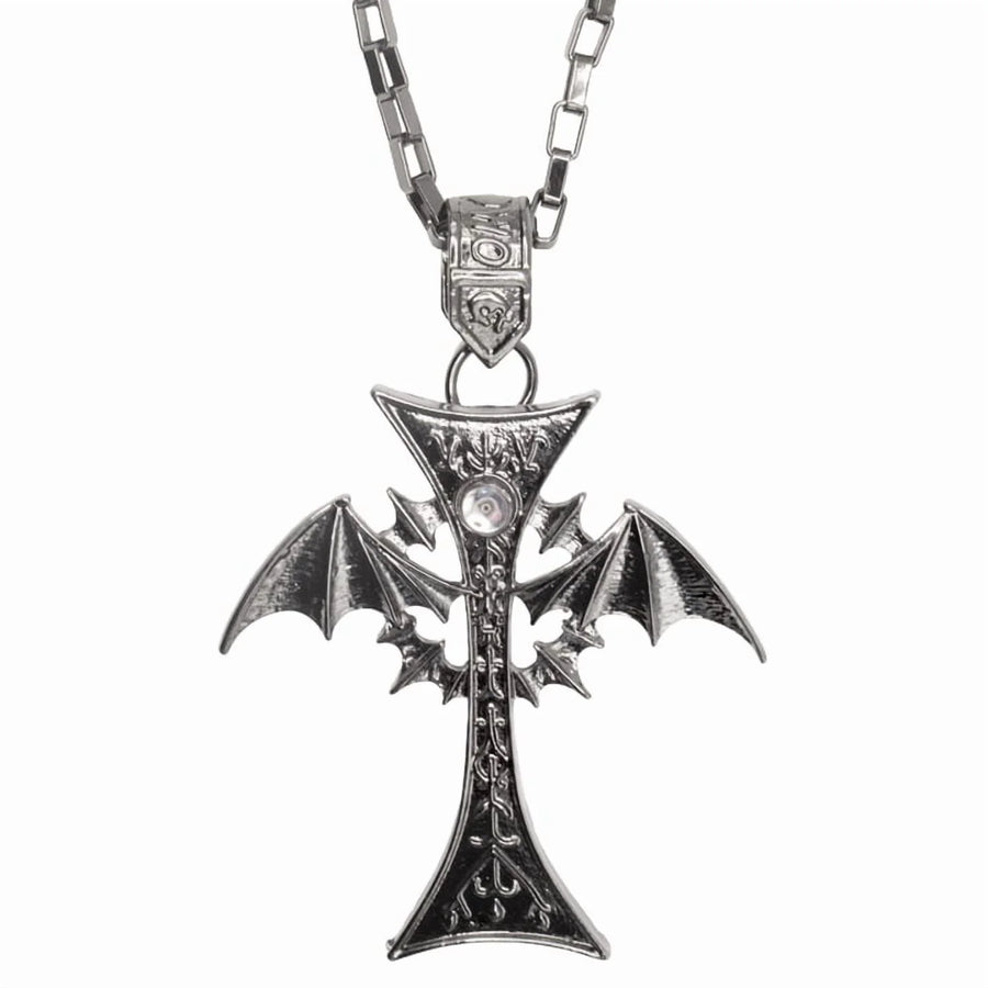 Unleash your inner vampire with this Vampire Cross Necklace! This elegant black cross necklace features bat wings, perfect for adding some edgy and mystical flair to any outfit. Embrace your dark side and leave an unforgettable impression.